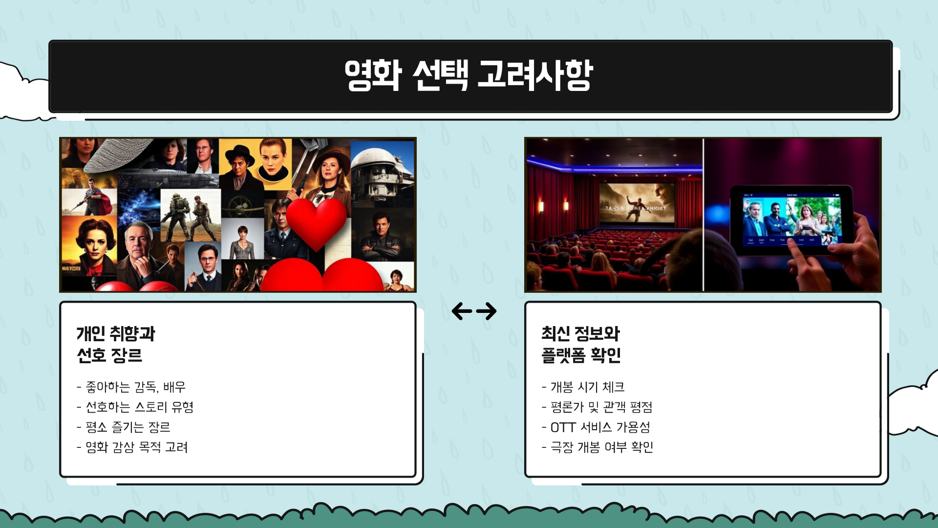 어떤 영화가 나에게 딱 맞는지 고르기 어렵습니다. 그래서 오늘은 최신 개봉작부터 흥행 대작까지